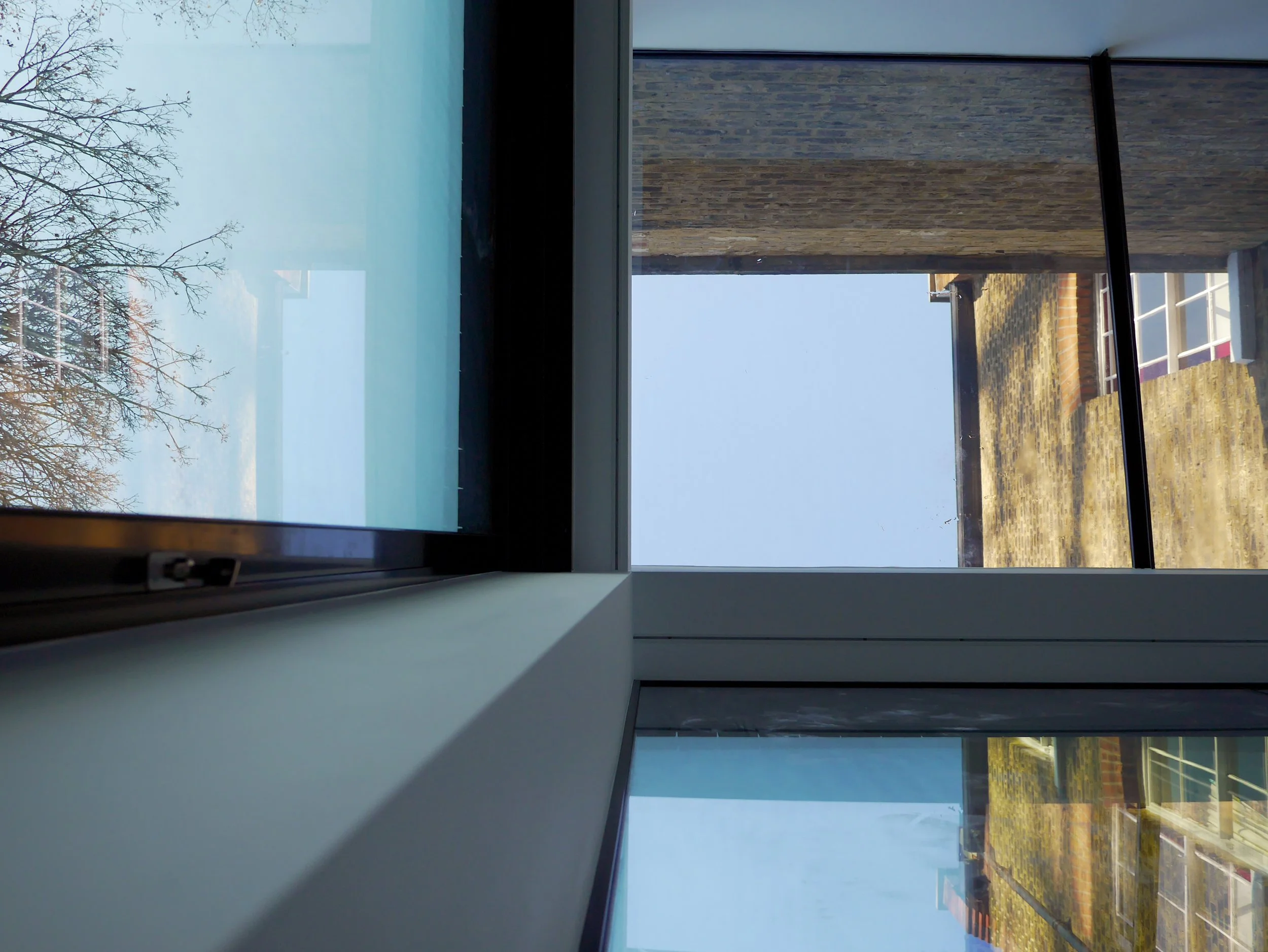 This whole house renovation of a large end of terrace house in Canonbury included a new timber clad garden room, with sliding glass walls.